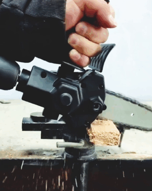 Виріб оснащений зручною ручкою для фіксації та забезпечення точки опору під час розпилу товстих колод. Для захисту очей та обличчя від тирси в верхній частині вмонтований захисний щиток з пластику