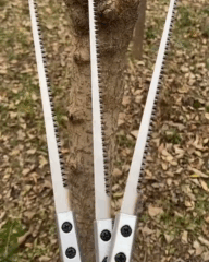 Ручна пила виготовлена з високоякісних матеріалів. Вона міцна і прослужить вам довгий термін. При тривалому використанні зубці пили можна заточувати для ще ефективнішого розпилювання деревини